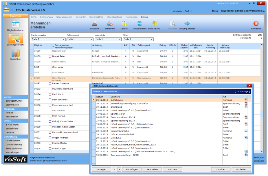 Aus diesem Grund haben wir Ihnen hier eine kleine Bilder-Galerie vorbereitet, aus denen Sie sicherlich schon die ein oder andere interessante und für Sie wichtige Information über den Leistungsumfang von roSoft Vereinsprofi 5.2 entnehmen können.