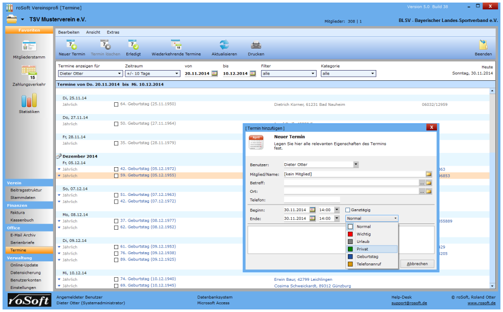 roSoft Vereinsprofi 5.2: Terminverwaltung