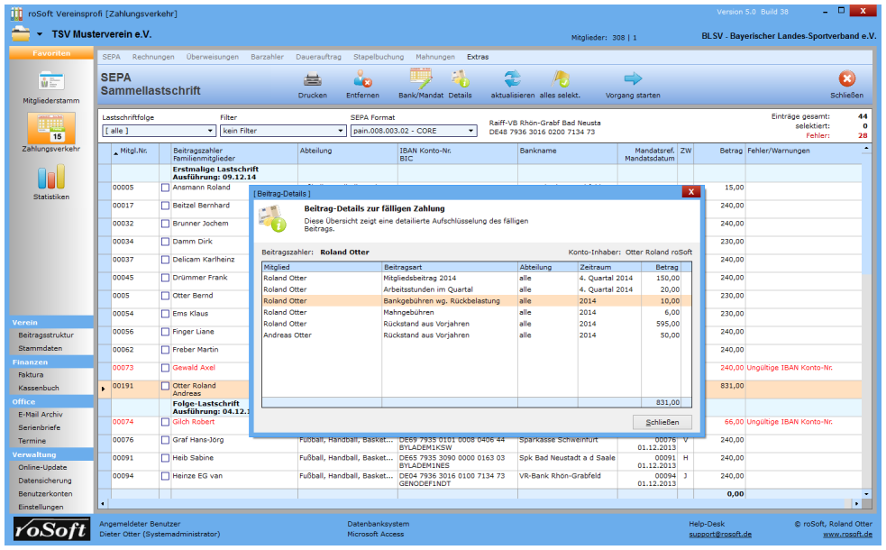 roSoft Vereinsprofi 5.2: Zahlungsverkehr