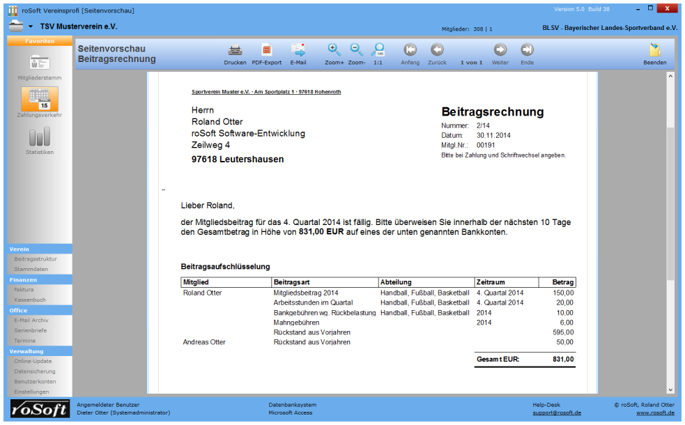 Erstellen und Drucken von Beitragsrechnungen | |